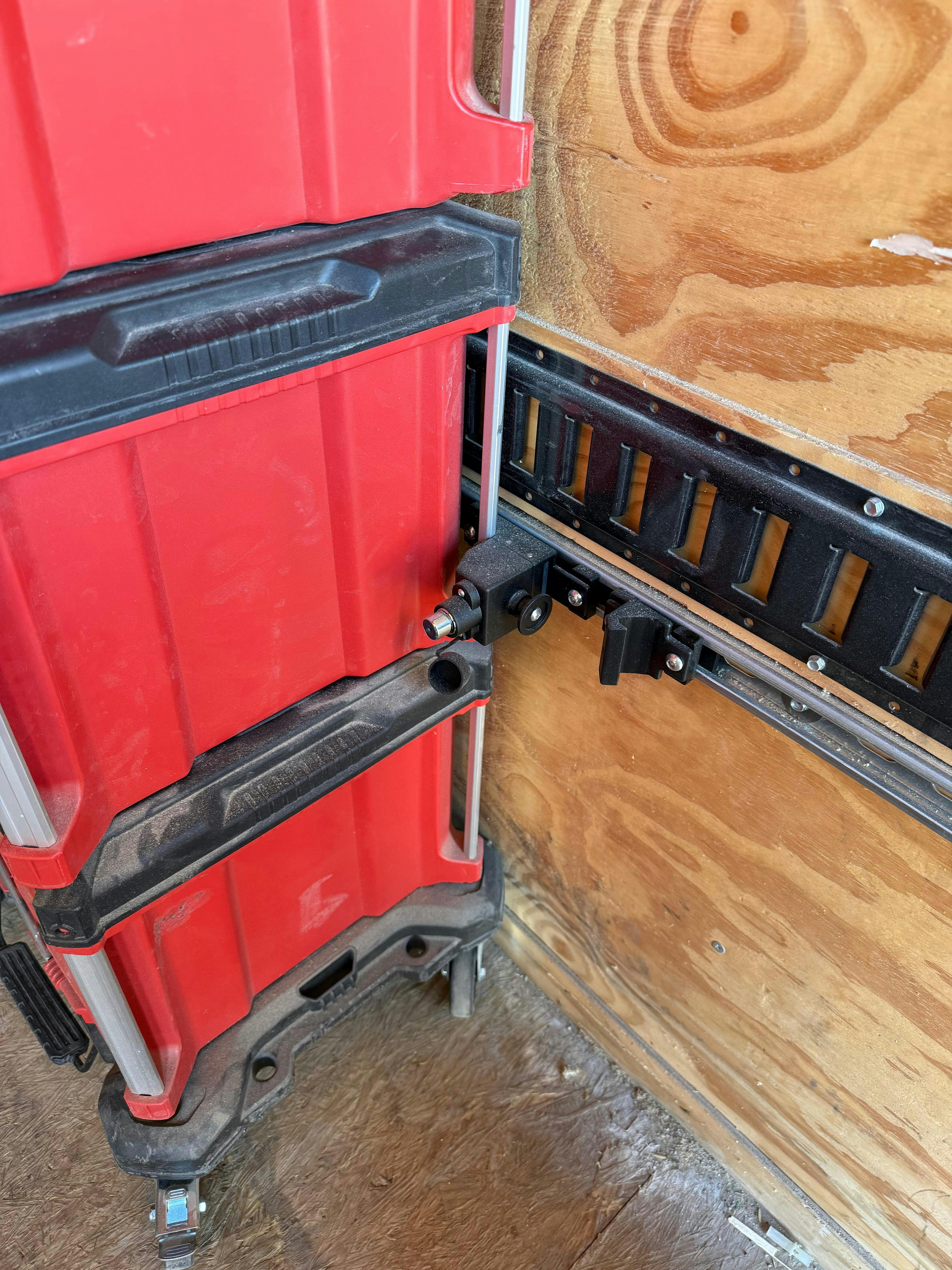 Install took me maybe an hour start to finish! The Milwaukee stacks roll in and lock with ease. Actually for secure and sturdy than I woulda have thought! Holds tight to the trailer wall and removal is very quick now