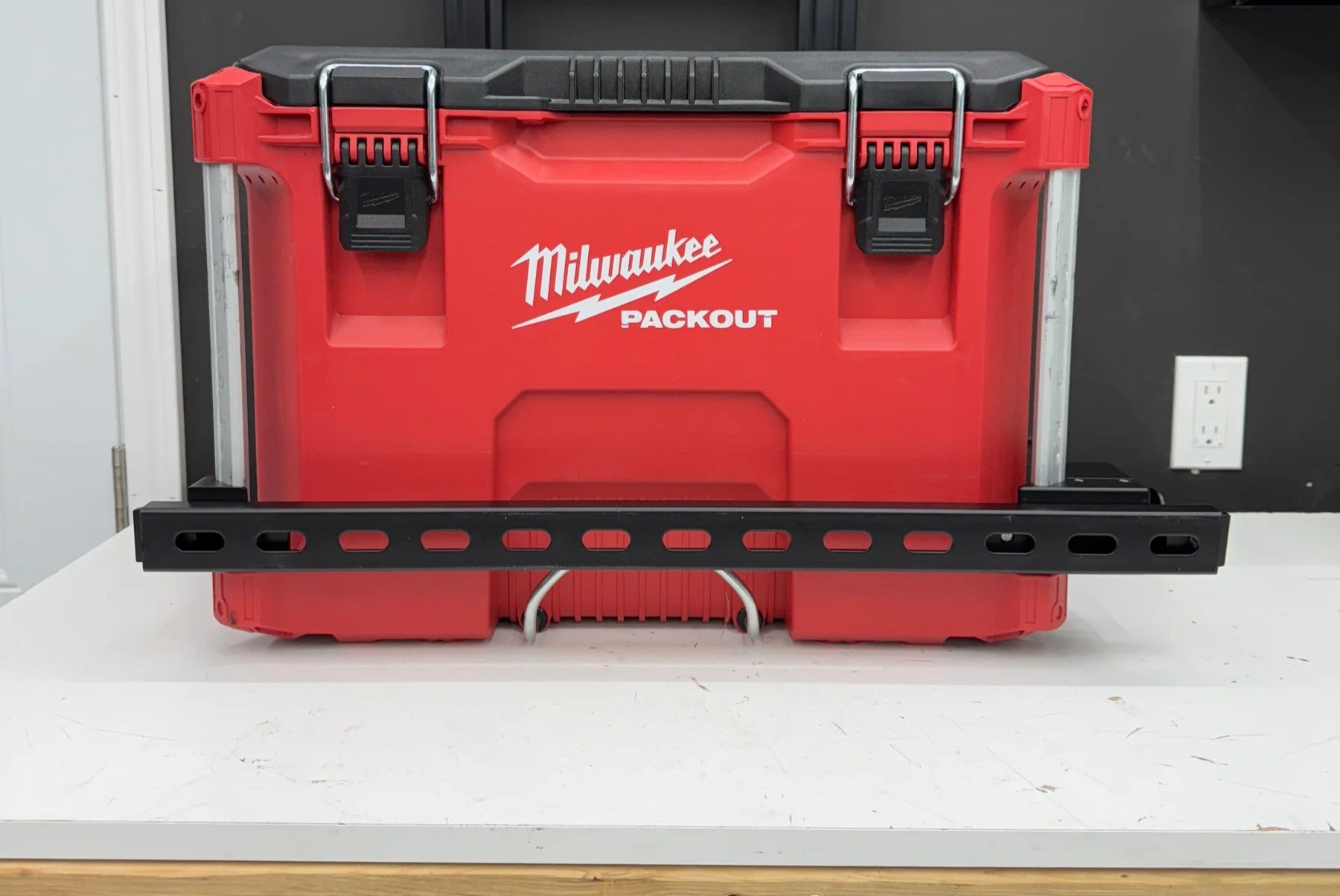 - Fits and locks all full-size Milwaukee Packout organizers with aluminum rails on the sides.