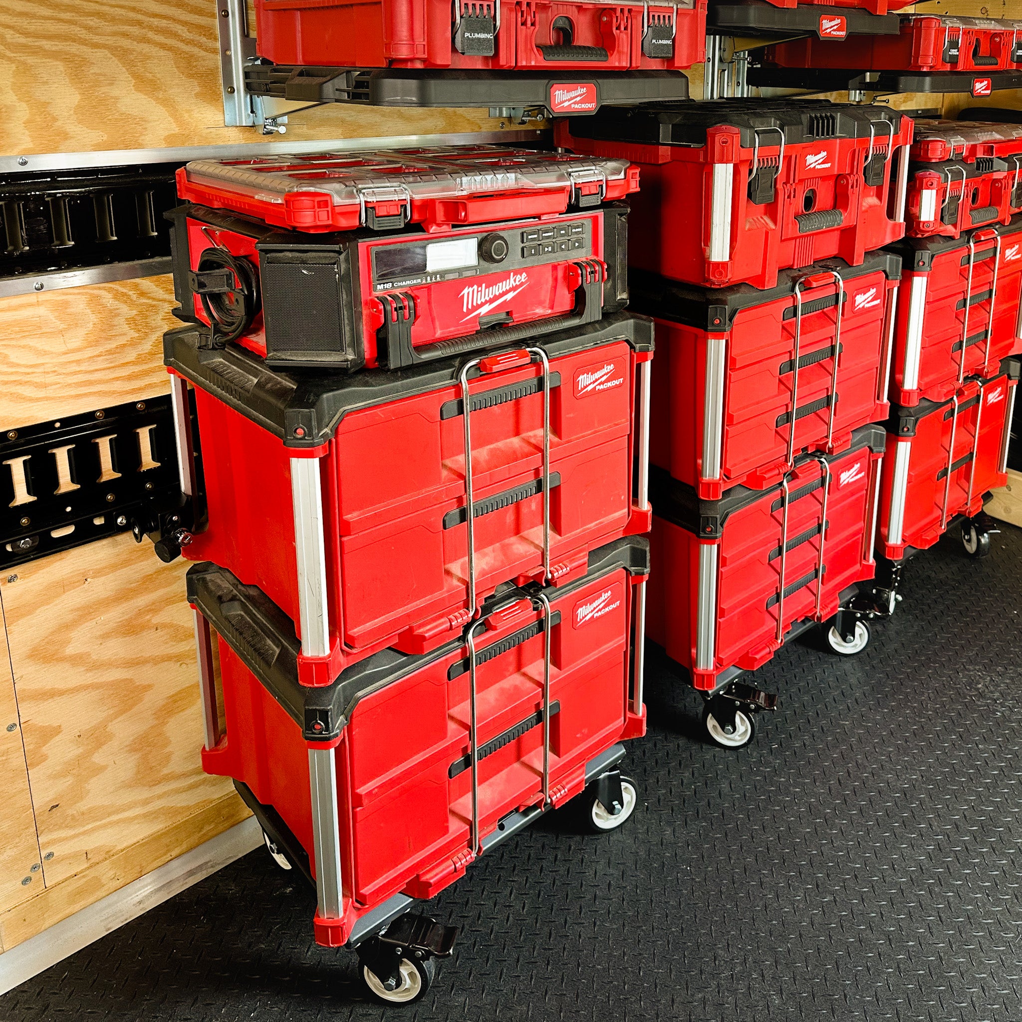 - Spring-loaded system accepts any Packout organizer with rails.
